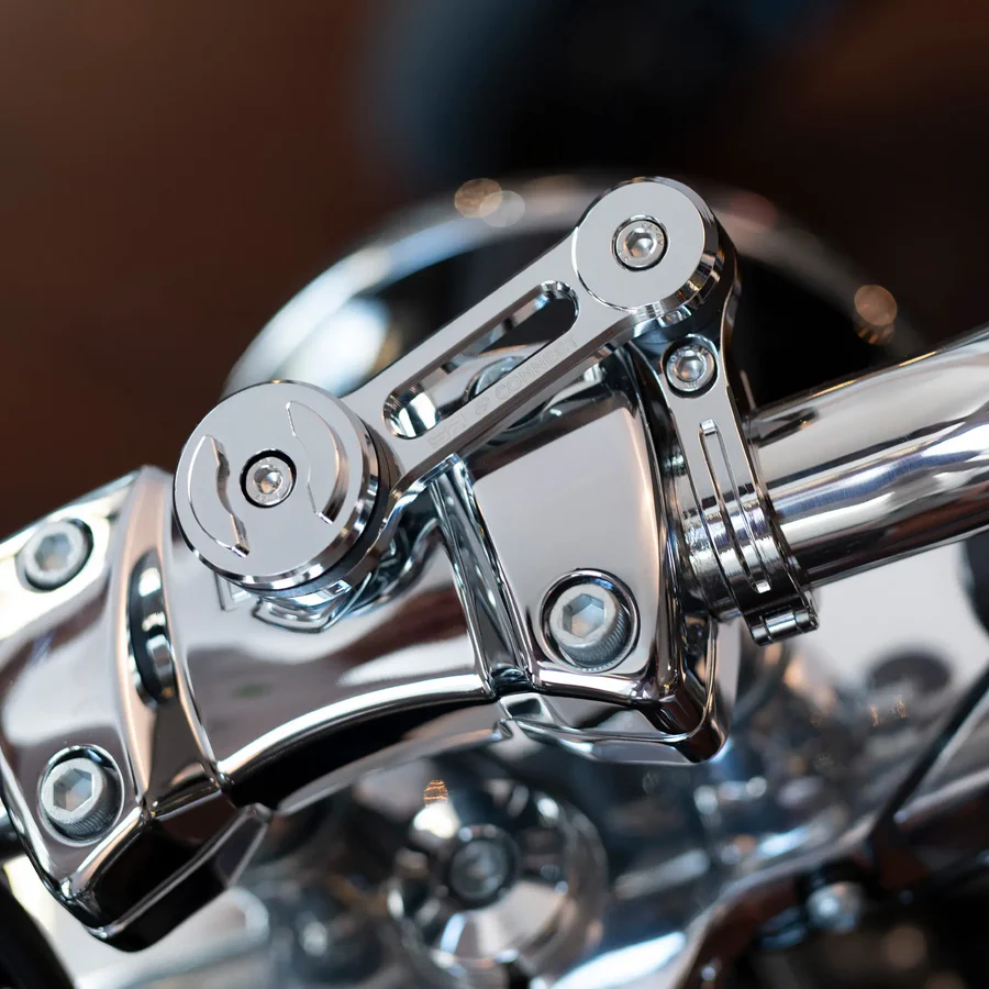 De Moto Mount Pro Chrome kan worden gemonteerd op standaard of oversized sturen met een diameter van 2,22 / 2,54 / 2,86 / 3,17 cm of 0,875 /  1,0 / 1,125 / 1.25 inch en is flexibel 360° verstelbaar.